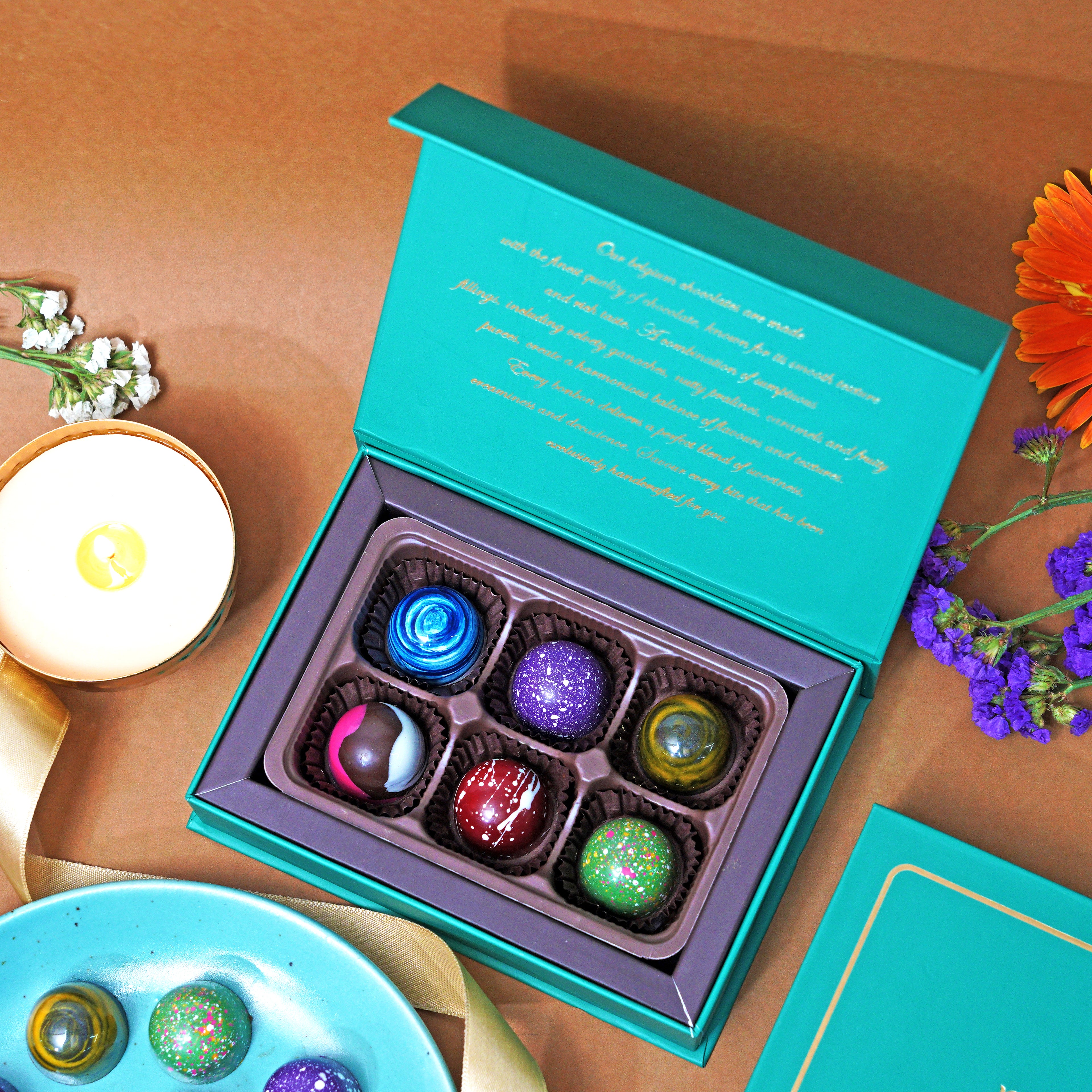 the Velvet Fine Chocolates Diwali Collection, a luxurious celebration of taste and tradition. Crafted with the finest cocoa, each piece offers a rich, velvety texture and a melt-in-your-mouth experience. This exclusive Diwali collection is thoughtfully designed to capture the essence of the festival of lights, blending premium chocolate with festive warmth.