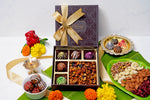 3 chocolate modaks(Lemon soft filled, gulkand, pista crisp), 2 energy ladoos(chocolate, orange), 50 gms sweet and spicy trail mix