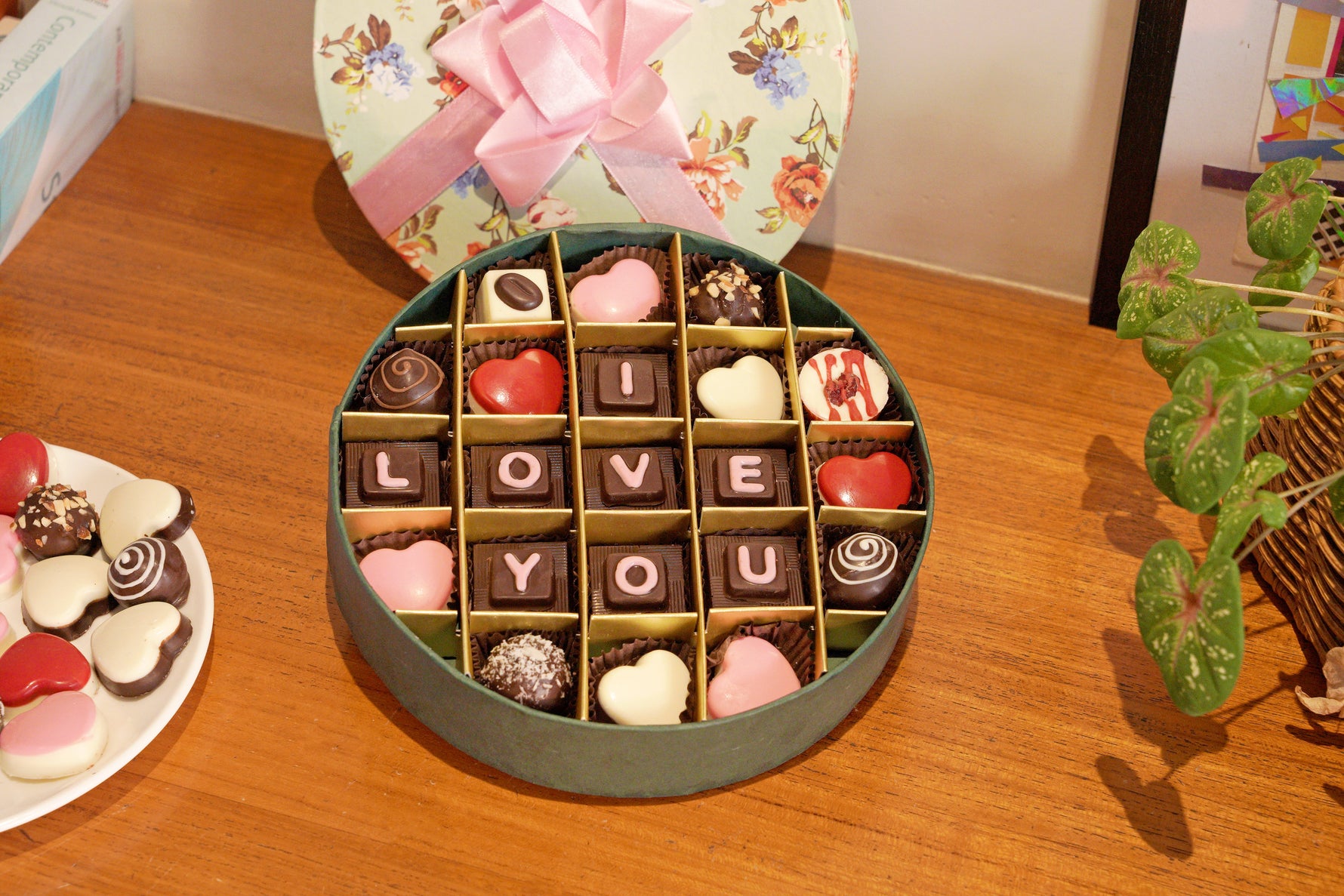21 assorted chocolate with I love you letters (coffee, hazelnut truffle, milk truffle, cranberry, darl truffle, coconut truffle, etc)