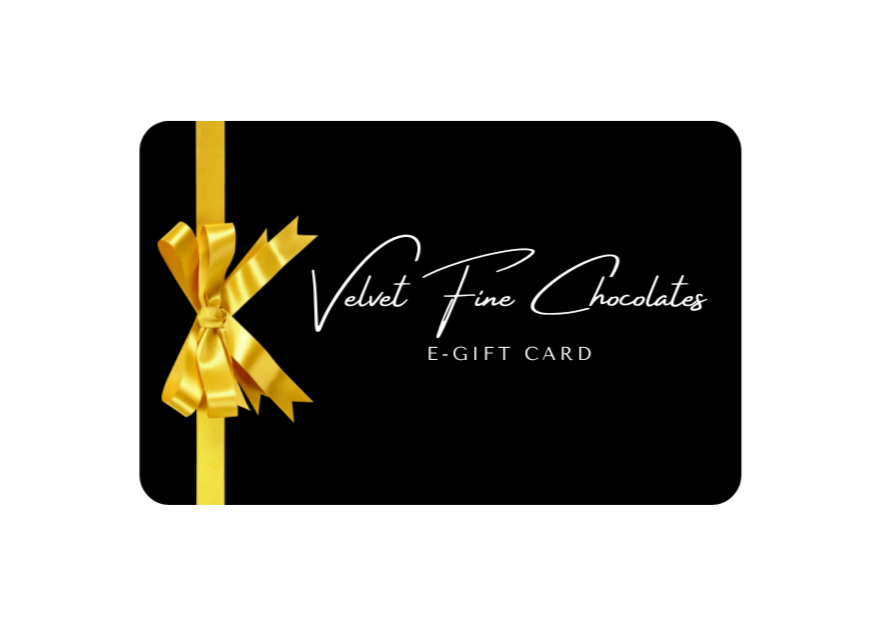 Give the gift of indulgence with a Velvet Fine Chocolates gift card. Whether you're celebrating a special occasion, thanking a client, or simply treating someone to a moment of pure delight, our gift cards are the perfect choice.