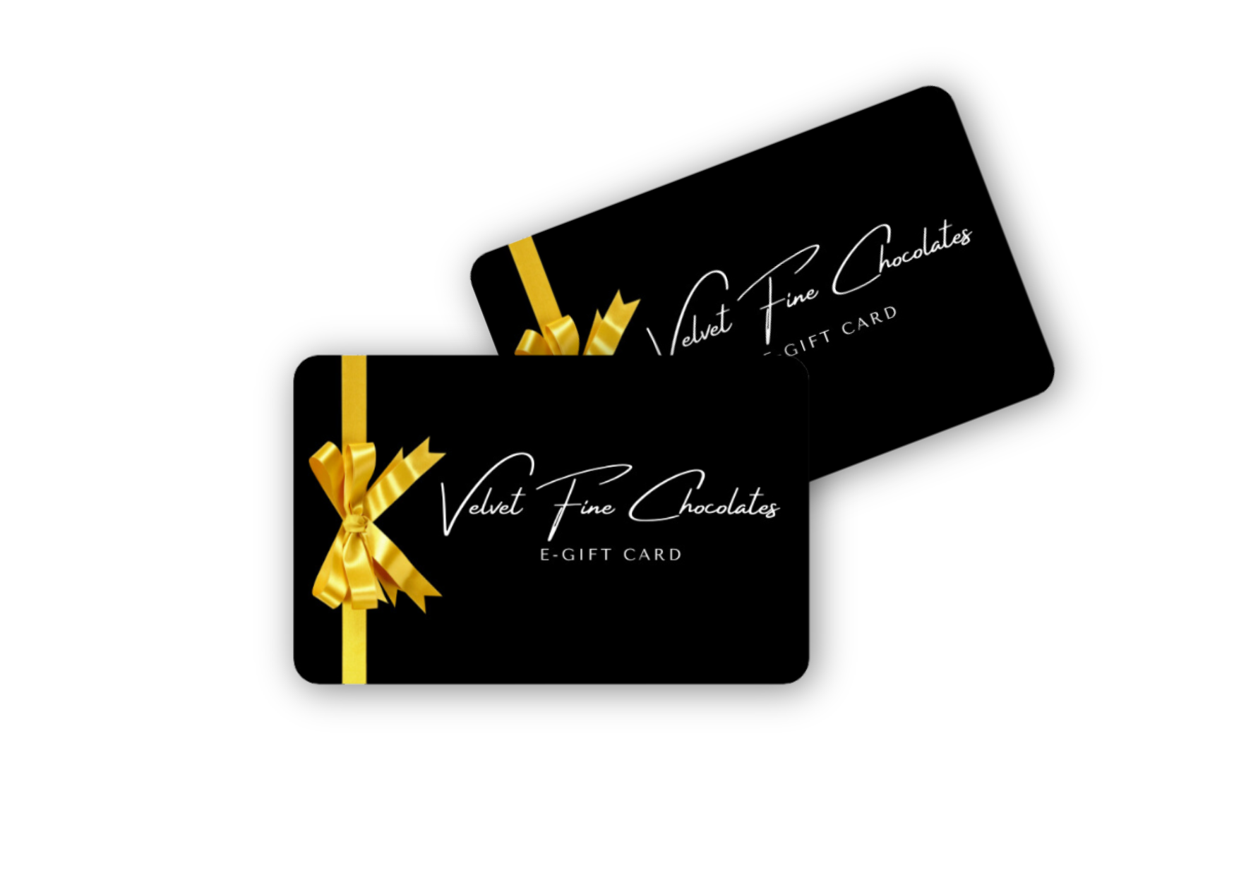 Velvet Fine Chocolates gift cards are available in various denominations to suit your gifting needs. Purchase and redeem them online conveniently through our website.