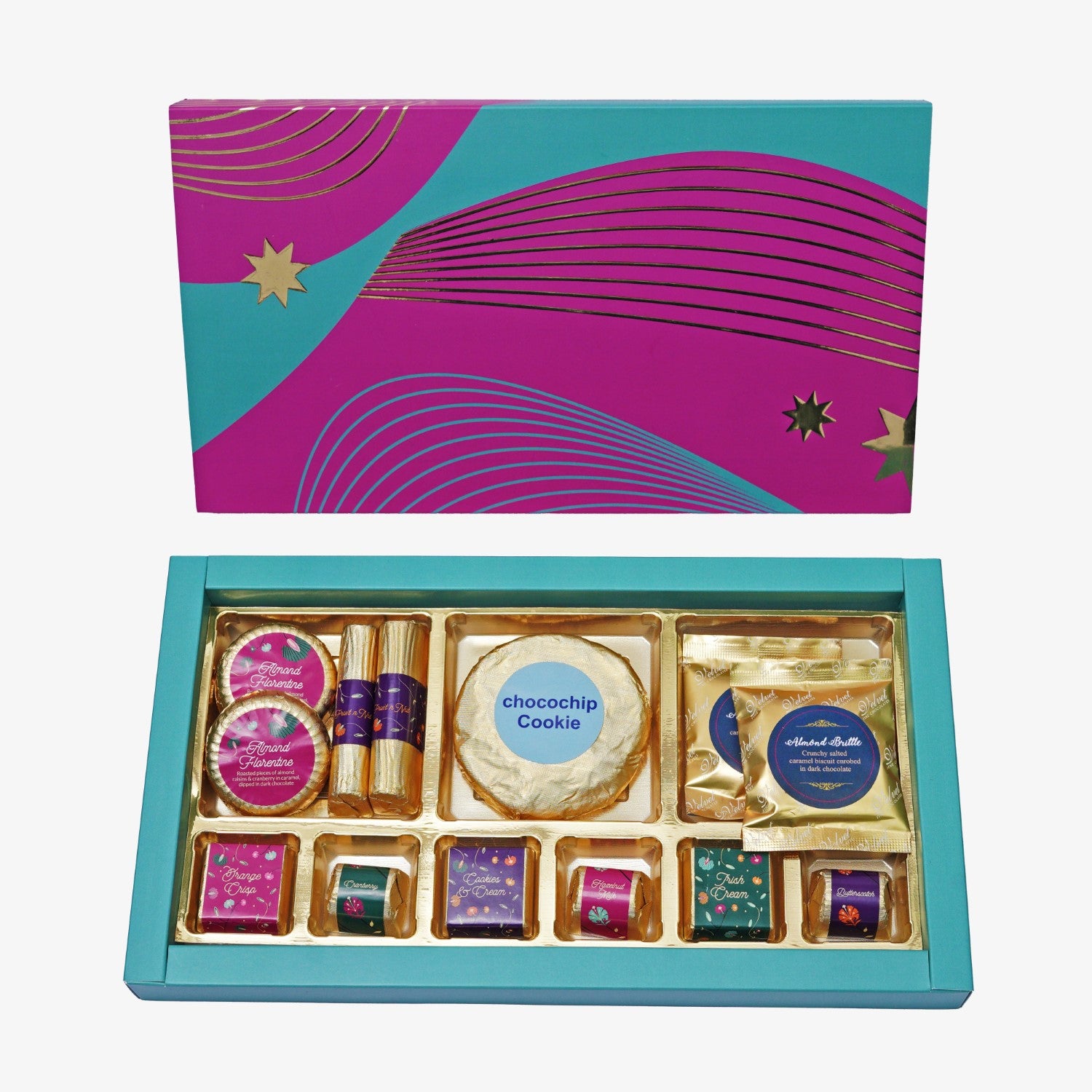 Enjoy a festive collection of artisanal chocolates and confections, elegantly presented for a luxurious Diwali celebration.